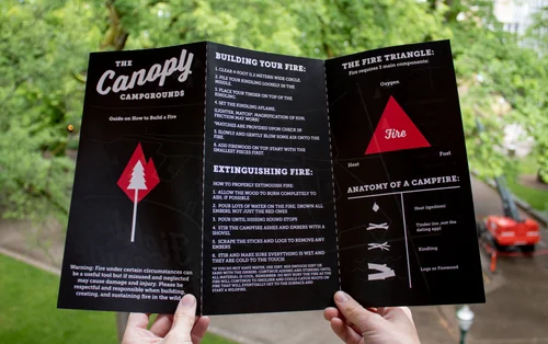 A how-to guide to starting and sustaining a fire in the wild as pert of a branding project for a campground that blends the outdoors with fresh design.